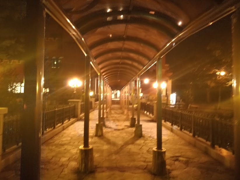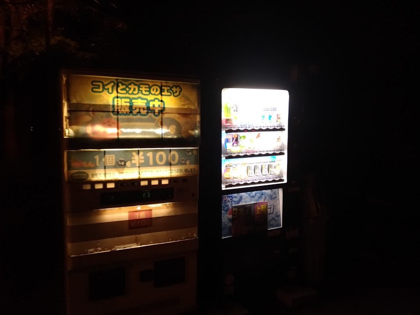入り口に鯉&カモの餌の自販機あり。人影を見つけると凄い勢いでカモと鯉が寄ってくる。夜でも。あと入り口が豪華。