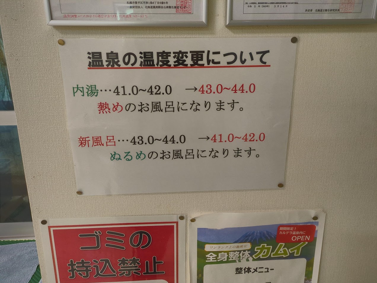 小樽温泉 オスパちょうどこの時に体調不良になっており、体を温めていいのか冷やしたほうがいいのか意見が分かれており不明。