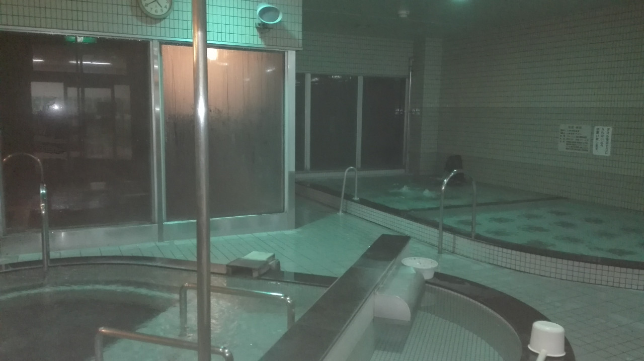 壁際には打たせ湯の残骸と水風呂(オーバーフロー方式)と電気風呂(入らないので不明)。